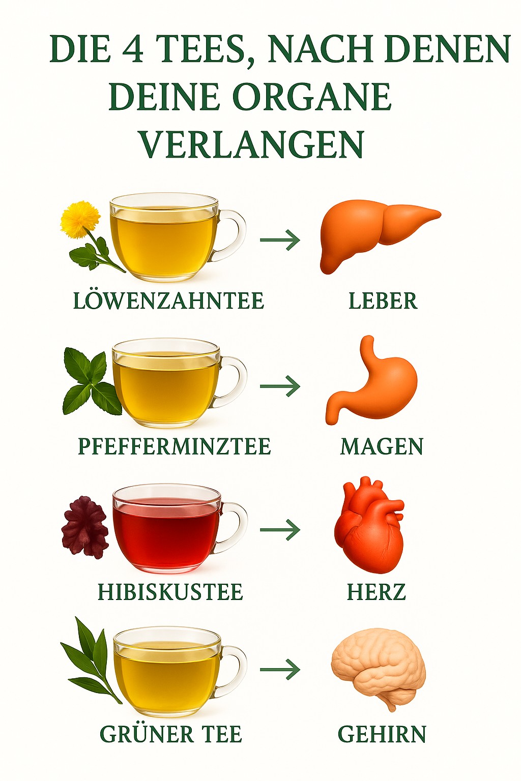 Kräutertees können den Körper sanft unterstützen und passen gut zu einem bewussten Lebensstil. Die folgenden vier Sorten werden traditionell mit bestimmten Organen in Verbindung gebracht und lassen sich leicht in den Alltag einbauen.