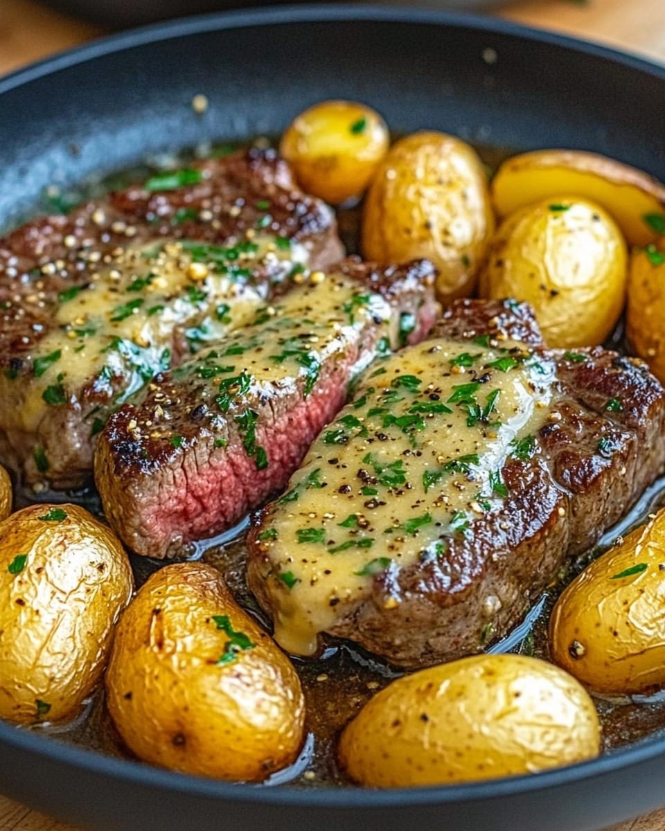 Gebratenes Rindfleisch mit Bratkartoffeln