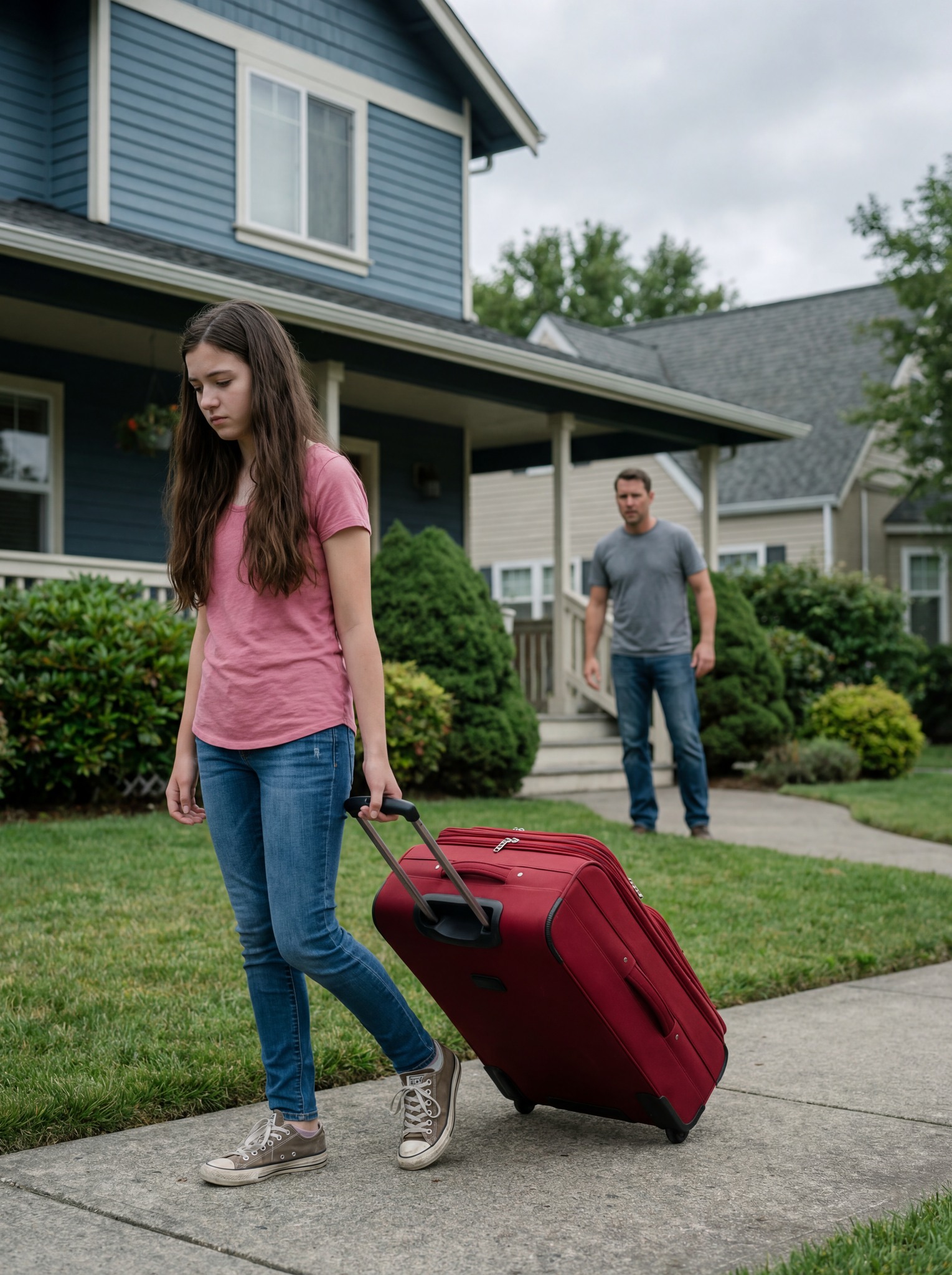 Sie war vierzehn – klein, durchnässt vom Regen, einen abgenutzten Rucksack umklammernd – und stand auf den Stufen meines Hauses in Salem, Oregon . Sie widersprach nicht. Sie bettelte nicht. Sie sah mich nur mit aufgerissenen, verängstigten Augen an, wandte sich dann ab und verschwand im Sturm.