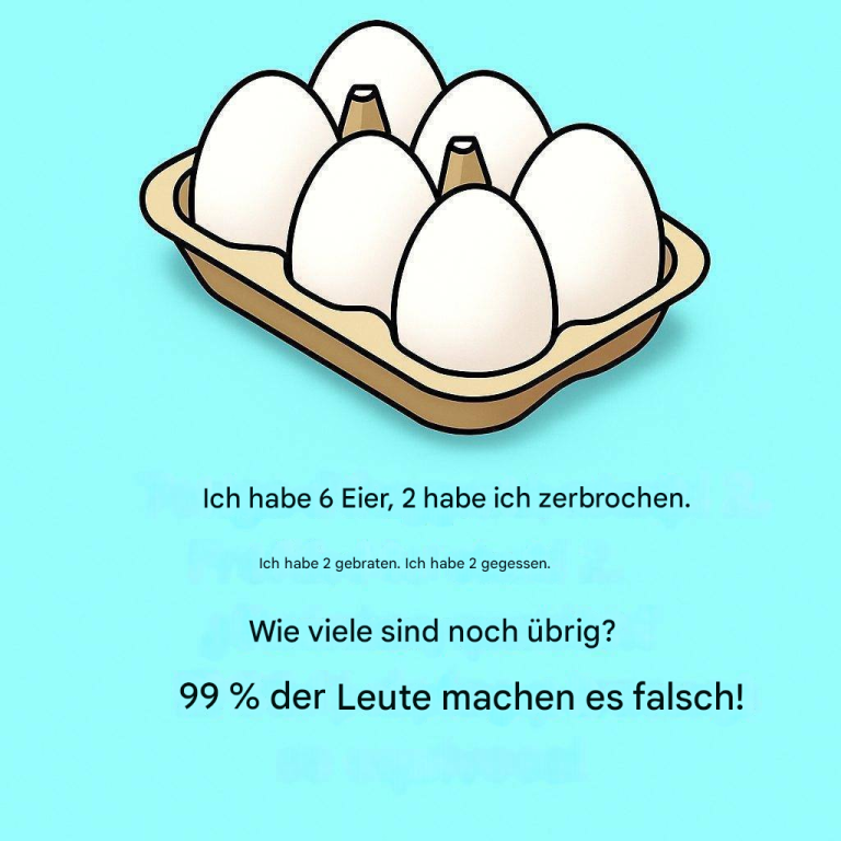„Ich habe 6 Eier. Ich habe 2 zerbrochen, 2 gebraten und 2 gegessen. Wie viele Eier sind noch übrig? 99 % der Menschen liegen falsch.“