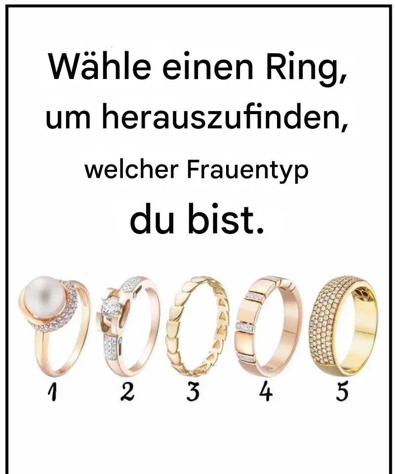 Sieh dir die fünf unten abgebildeten Ringe an ( oder stell sie dir vor, falls du kein Bild hast ) und wähle spontan den Ring, der dir am meisten zusagt. Finde dann heraus, was diese Wahl über dich als Frau aussagt. Bereit? Los geht’s!